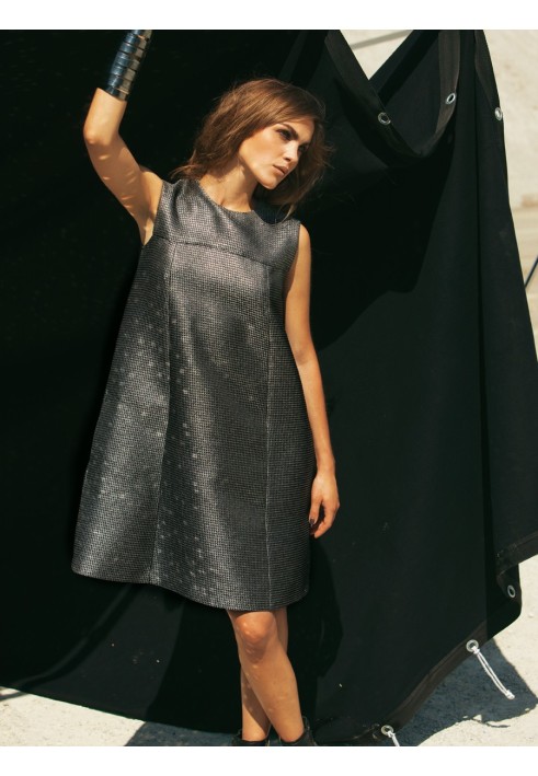 Популярный силуэт 60-х воплощен в ультрасовременном материале. Платье с отрезной кокеткой, рельефными швами и карманами в боковых швах настолько удобно и оригинально, что вы будете искать повод одеть его снова и снова.